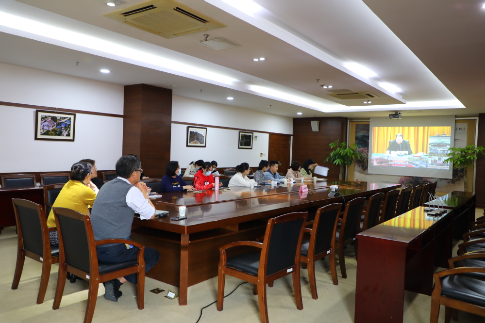 11月17日下午,我校组织观看学习贯彻党的十九届五中全会精神中央宣讲团报告会视频,校长王刚、副校长郁萍及2020级辅导员在东海源大楼南807会议室观看报告。