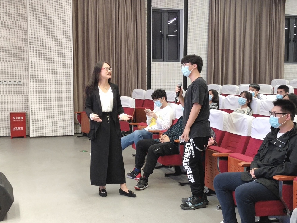 讲座内容从三个方面展开,分别是解读压力与情绪、管理压力的技巧、管理情绪的技巧。讲座一开始,为了拉近和学生们之间的距离,让学生更好的解读“压力”,施谊先和在座学生进行了破冰游戏,从解读压力为切入点,提到要正确认识压力源,心态决定一切。她又结合自己身边的案例,让学生们更好地认识到建立在自知之明的基础上的心理紧张是可以通过发挥自己的潜力,实现目标满足需要而不断消除的。最后给我们分享了正确处理情绪的三步骤,接受、宣泄、处理事情或者改变自己。整场讲座案例贴近大家生活,引起了学生们的共鸣,现场气氛活跃。