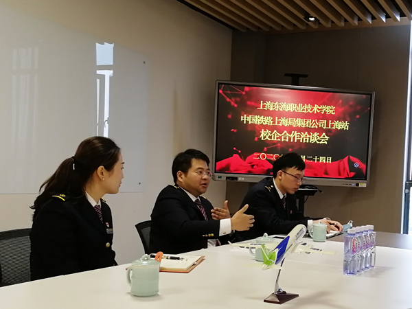 在洽谈会上,周孟华和张春向上海站领导详细介绍了我校相关专业建设和毕业生的基本情况,并邀请他们现场观摩了空乘专业的实训课教学。东海学子未加修饰的精神风貌给来宾们留下了深刻的印象,上海站几位领导都对现场学生的总体素质赞不绝口。胡荣华相信东海毕业生完全符合上海站的招聘需求,双方建起更深层次的合作关系可以说互惠互利,无论是从学生培养角度还是从上海站业务开展角度来说都能形成良好的衔接,并与我校就进一步加强宣传和交流、开展定向培养、课程建设融合岗位培训等问题达成了一致。