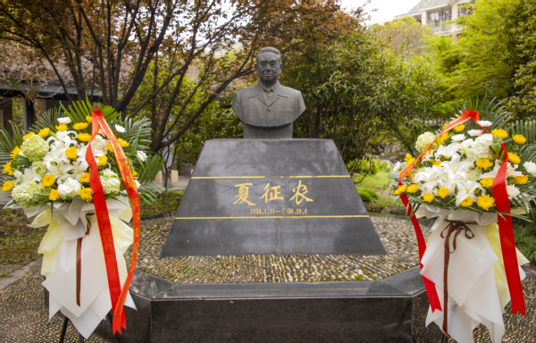 最后,校董事代表与党政领导代表全体教职工向夏老敬献花篮。参加仪式的师生代表怀着崇敬的心情向夏老铜像三鞠躬,依次献上菊花,表达怀念之情。