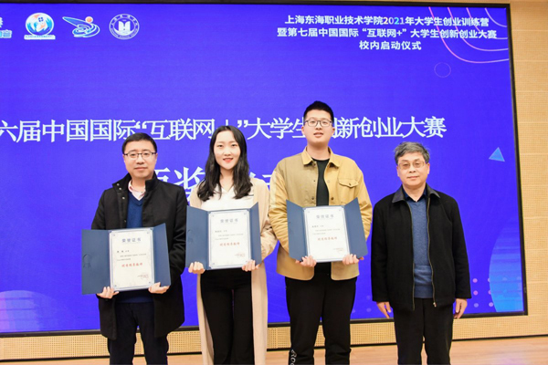 在激动人心的乐声中,上海市学生事务中心、闵行区就业促进中心、吴泾镇社区事务受理服务中心、学校以及合作园区的领导共同上台,正式开启了上海东海职业技术学院2021年大学生创业训练营暨第七届中国国际“互联网+”大学生创新创业大赛校内选拔赛。