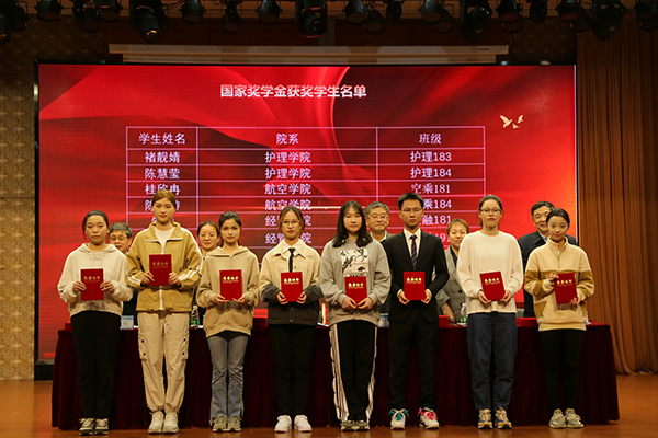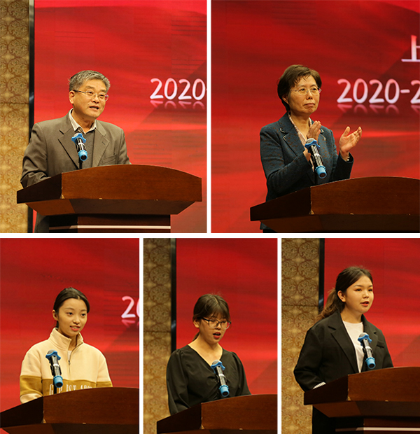 航空学院陈逸游、教育学院郑娜、经管学院地力娜尔·巴合提奴分别作为国家奖学金、国家励志奖学金、内职班奖学金获奖代表发言,表达了对学习的热情,对荣誉的珍惜,对父母、学校、国家培养的感恩,对未来的期许和追求。