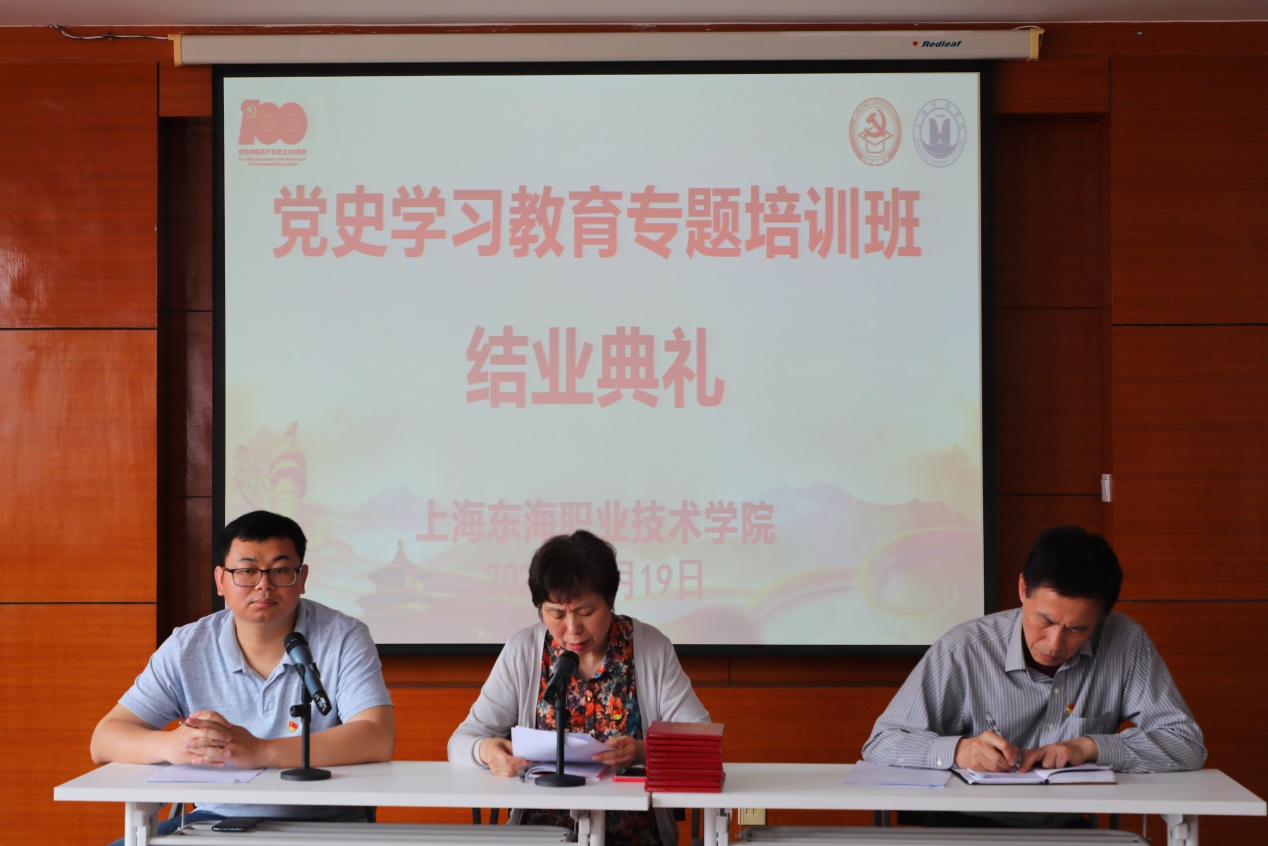 为深入学习贯彻习近平新时代中国特色社会主义思想,扎实推进学校党史学习教育,上海东海职业技术学院举办为期一周的党史学习教育专题培训班。5月19日,党史学习教育专题培训班在东海源北819举行结业典礼。会议由党政办朱新华主持,党委书记曹蓉蓉、党政办主任顾文业出席。