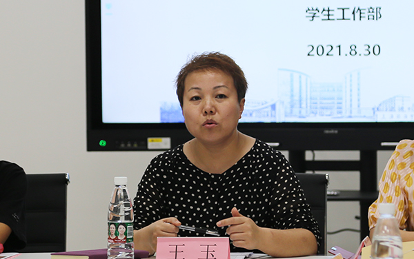 王玉在会上对全体教师提出了三点要求:第一,慎终如始,针对疫情防控要求,注重方式方法,抓实抓细各项工作。第二,全力以赴,要做到多走动学生、多和学生聊天、走入学生心里,关注学生心理健康问题。针对迎新工作,需要顶住压力,严格落实市教委各项工作。第三,确保安全,学生返校后将面对环境、管理等各方面的困境,学工战线的同仁们需要时刻绷紧心弦,做好安全稳定工作。