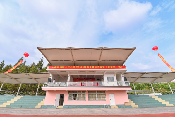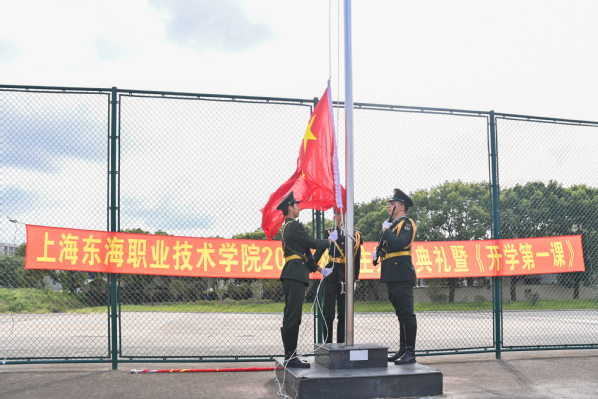 9月8日上午,上海东海职业技术学院2021级新生开学典礼在雄壮的国歌声中拉开帷幕,全体师生注目着鲜艳的五星红旗迎着朝阳冉冉升起,全场庄严肃穆。