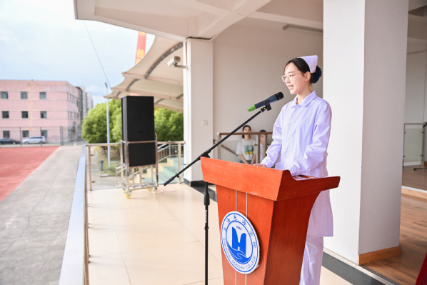 新生代表教育学院学生陈偲、学长代表护理学院学生郑思琪分别在典礼发言。陈偲说,我们将会以积极的态度和勤奋的努力,在学校的培养和老师的帮助下,坚定理想信念,夯实专业素养,努力成长为对国家有贡献、对社会有价值的人,在东海学院开创美好的未来!郑思琪说,大学是梦想新起点,是提升自我、塑造自我的崭新舞台。作为青年学生,应当满怀着昂扬斗志和奋进激情,将学业知识融入实际,将书本理论用于实践,知行合一,全面提高自己的综合实力,让青春无悔。