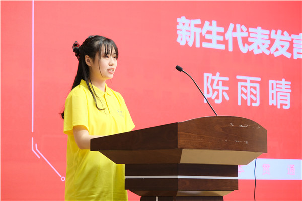 新生代表陈雨晴发言,号召全体新生以东海为起点、以上海师大为征程、以实现自我价值为目标,认真求真、笃行致远、砥砺前行,不断在求知的道路上前进。