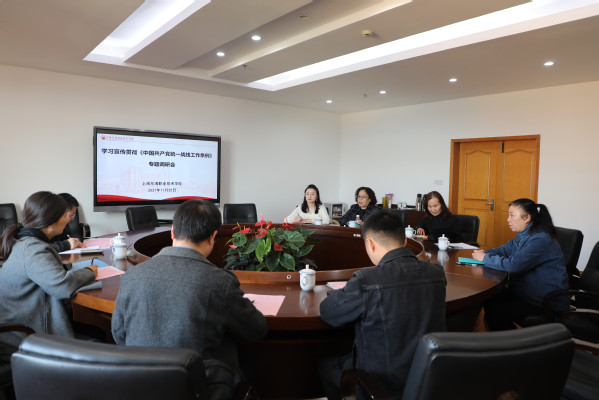 曹蓉蓉作汇报发言,她详细介绍了上海东海职业技术学院学习宣传贯彻《中国共产党统一战线工作条例》的情况,贯彻落实《条例》的具体举措,存在问题及下一步工作考虑。她说,在学校改革和发展过程中,学校党委始终坚持把统一战线工作作为一项重要工作来抓,紧紧围绕立德树人根本任务,认真学习宣传贯彻《条例》精神和要求,充分调动党外人士参政议政、关心学校改革发展的积极性和创造性,充分发挥党外知识分子的优势和作用,积极做好少数民族学生的思想政治教育,扎实推进学校发展。她说,学校成立民族宗教工作领导小组,通过形式多样、生动活泼的校园文化活动,唱响主旋律、弘扬正能量;在实际工作中,学校始终坚持提升民族辅导员教育服务管理能力,探索“1+2+3”少数民族学生思政教育创新实践,利用学校“五老”资源,积极打造“民族一家亲,关爱育新人”上海民办高校关心下一代工作特色品牌项目,并成立东石榴学生发展工作室,引导民族学生增加国家认同感、文化自信以及中华民族共同体意识教育,厚植家国情怀。她表示,今后校党委将更加高度重视统战工作,聚焦学校“十四五”规划实施,充分发挥统一战线团结凝聚优势,汇智聚力、建言献策,为学校发展汇聚强大正能量。