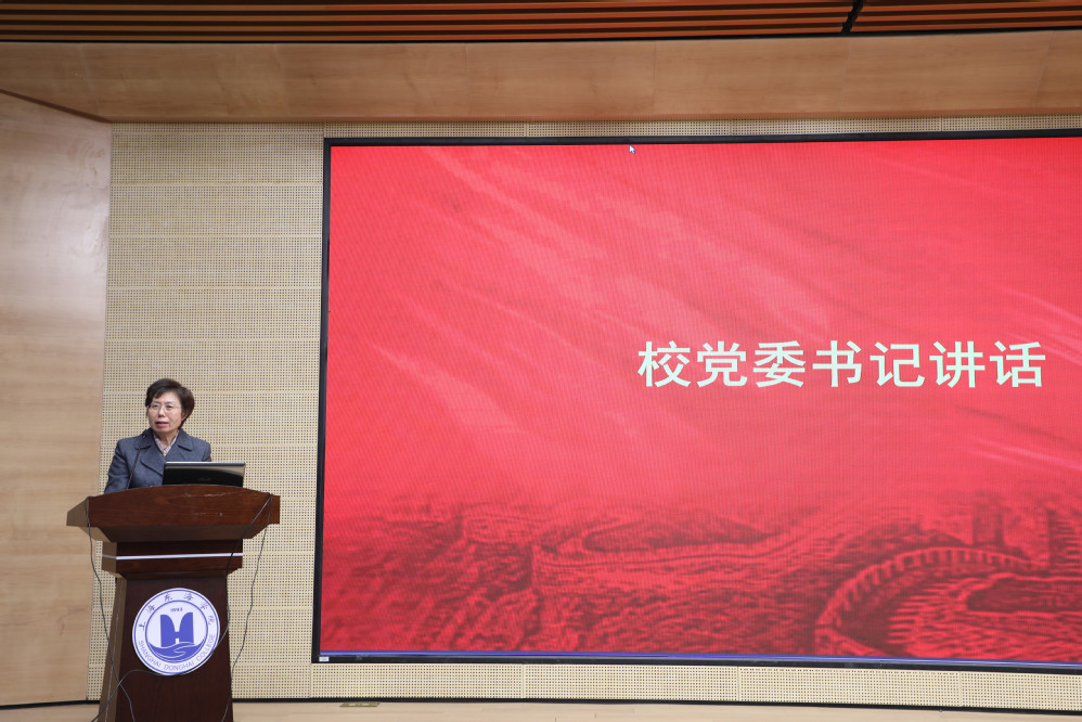 党委书记曹蓉蓉对获得征兵工作先进集体、先进个人荣誉称号的单位和老师表示祝贺。对参与征兵工作的各级干部和工作人员致以崇高敬意。她希望大家继续做好2022年的征兵工作,严格落实国家及上海市征兵工作要求,扎实推进学校征兵工作,并提出三点要求:一要深刻认识征兵工作的重大意义,提高政治责任感。征兵是一项严肃的政治任务,各级干部和辅导员必须把思想统一到习近平总书记和党中央的决策部署上来,以高度的政治责任感和使命感做好征兵工作。二要把征兵工作作为学校立德树人的重要组成部分。大学生参军是我校人才培养拓展延伸的一种方式,也是对学生国防教育、爱国主义教育成效的检验。我们要广泛宣传、动员,鼓励更多的优秀大学生参军入伍,引导学生投身军营,把爱国之心化为报国之行。三要明确目标任务,细化责任分工,通力协作。学校武装部要履行好征兵主体责任,与各学院、各相关职能部门紧密配合,做到参军政策宣传到位、人员落实到位、服务保障到位,让每位学生“入伍安心、服役暖心、退伍放心”,确保学校2022年征兵工作高标准、高质量完成。