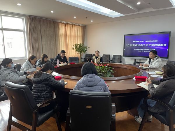 12月16日下午,学校召开2022年依法自主招生章程协调会。会议对2022年依法自主招生章程内容进行商议,对2022年招生宣传工作进行安排布署。分管校领导、各二级学院行政办公室主任和招生办公室全体出席会议。