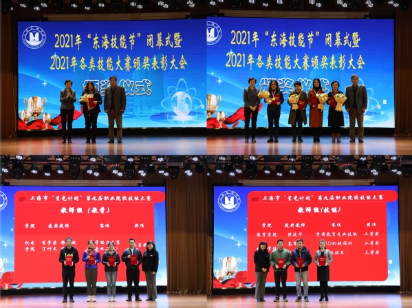 她总结道,2021年是大赛较多的一年,在2021年全国职业院校职业技能大赛上海市选拔赛中,我校参加7个赛项,获得8个奖项(一等奖4个,二等奖1个,三等奖3个),并成功承办了3个项目的上海选拔赛。有4个项目参加国赛,获得二等奖三等奖各一项。