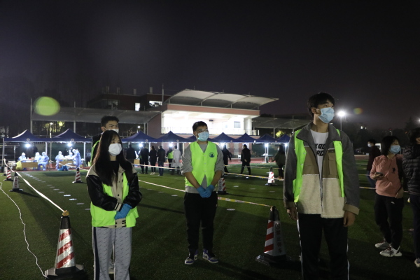 3月11日下午3时许,接闵行区疾控通知,我校按上级要求实施“2+12”管控措施。学校迅速启动应急防控预案,召开疫情领导小组及工作小组会议,部署封闭管理期间的工作,各组按照预案及事先模拟演练的方案有条不紊的开展工作。3月11日晚20时,核酸检测工作在校运动场有序开展。校长王刚、党委书记曹蓉蓉等校领导到现场查看了解检测情况。并与等候检测的师生员工进行交流,询问大家排队时间,叮嘱大家要减少流动,科学佩戴口罩,认真遵循防疫要求,做好自我防护。