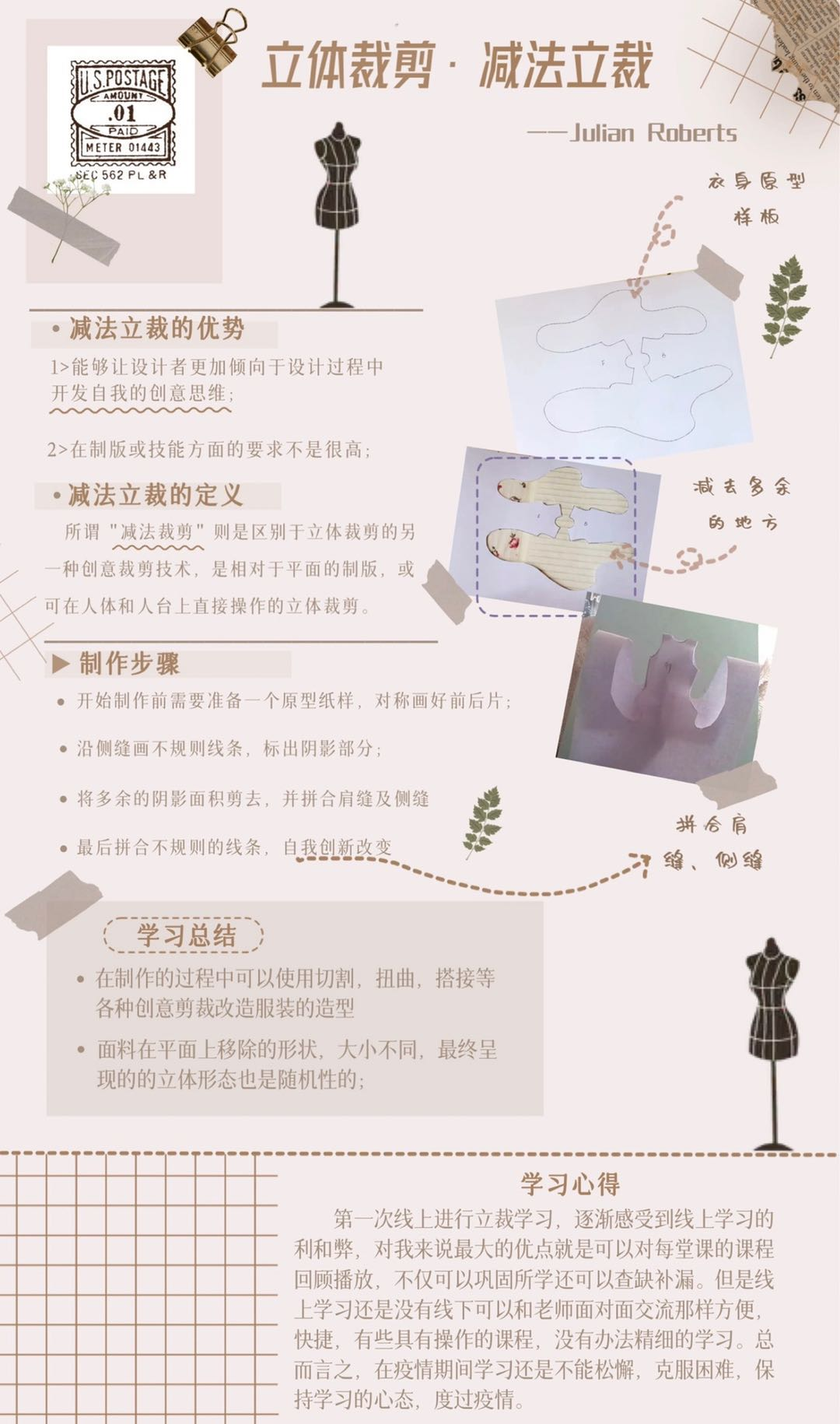 第一次在网上上立体裁剪课程,课前非常担心,担心网络卡顿,担心看不清老师制作,也担心自己无法集中注意力。课后完全不担心这些问题,老师会和我们互动问问题,第一堂课学习减法立裁,对于有基础的我来说,完全没有压力非常好理解,结束还有回放,非常棒! ——服装202班 陆宇琼
