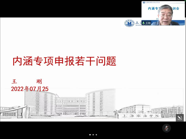 7月25日下午,我校2022年内涵建设专项申报培训会顺利召开。会议由校长王刚主持,各内涵建设专项主管二级单位负责人、项目负责人及科技发展处全体成员出席会议。