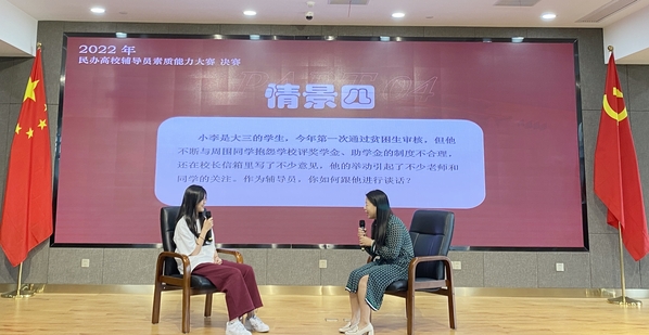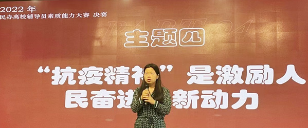 本次大赛从9月14日起,全市民办高校共推选出33位辅导员参加。经过理论测试(笔试)、案例分析、谈心谈话、理论宣讲等环节的比拼,周小娟老师脱颖而出,临场表现得到了现场评委的一致肯定。这也是继2020年首届民办高校辅导员素质能力大赛我校辅导员获得一等奖后,蝉联该奖项。