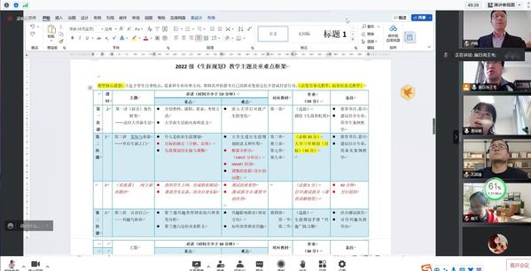 为进一步提升学校《职业生涯规划》课程教学质量和教学效果,规范教学要求,使课程更好对接学校的就业指导工作,10月15日下午,社科部“职业生涯发展与就业指导”备课组利用腾讯会议平台举行了新学期《职业生涯规划》课程集体备课会。全体专兼职教师参加会议,会议由社科部主任助理、课程负责人施晓玮主持。