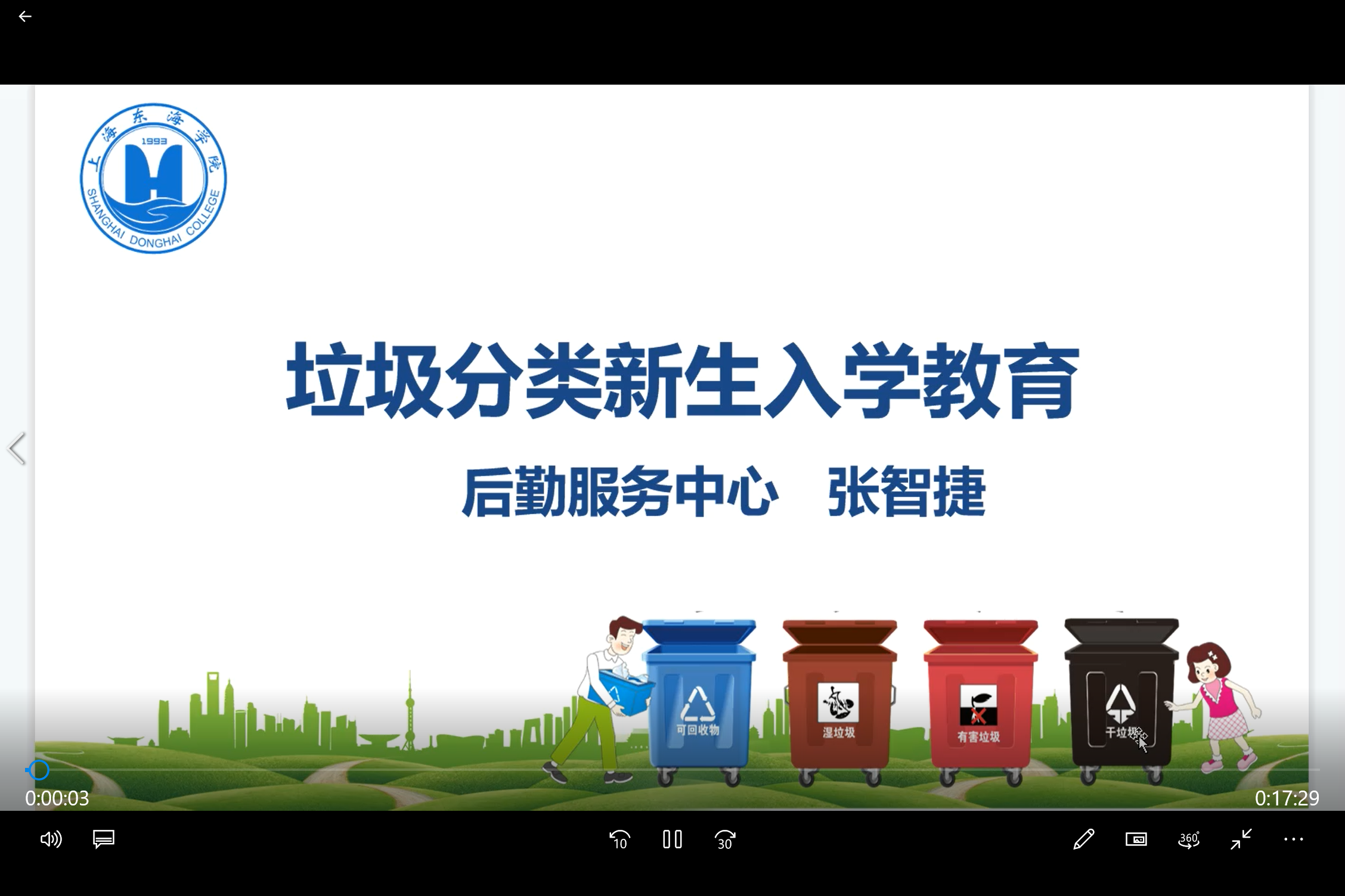 本年度的入学教育新增了三个全新板块:一是“普法教育”版块,内容涉及国家和教育部颁布的教育相关法律法规,如《宪法》、《教育法》、《职业教育法》等,还首次将《上海东海职业技术学院章程》纳入学习内容,旨在让同学们从进入高等职业院校的第一天起就能够树立“学法、知法、守法、用法”的理念;二是“校友故事”板块,由我校2012届会计专业毕业校友高靖轩主讲,作为一名东海学姐,高靖轩校友从回忆东海学习、生活的点滴往事说起,再到畅谈自己的学成收获和创业经历,一言一语无不透露出作为“东海人”的骄傲与自信,赢得了学弟学妹们的连连点赞;三是“后勤保障宣讲”,来自总务处的职绚绚和张智捷两位老师,分别对东海校园生活和垃圾分类中相关注意事项进行了详细讲解,将“文明校园”、“绿色校园”的概念深深灌输到了同学们的心里。