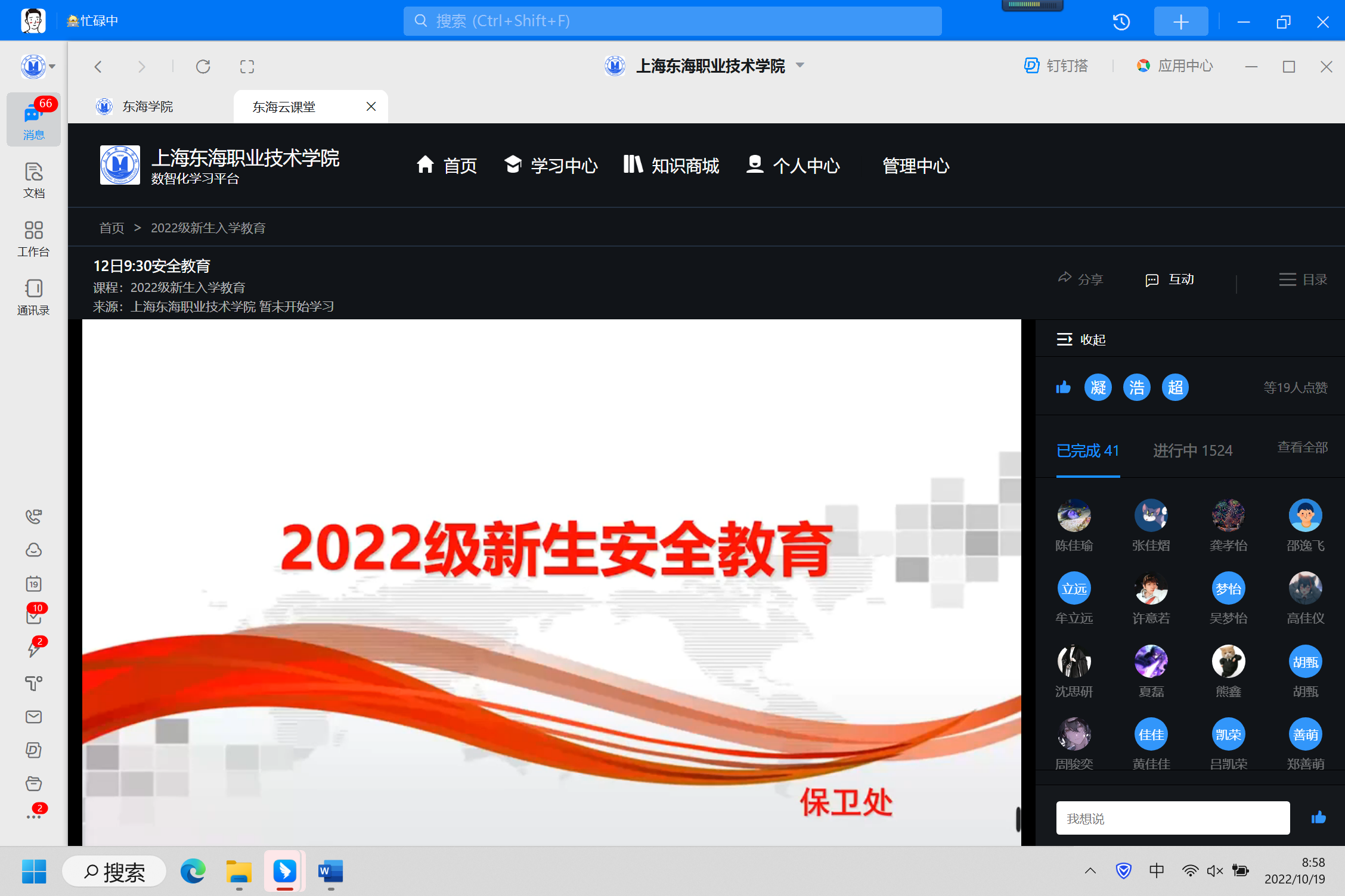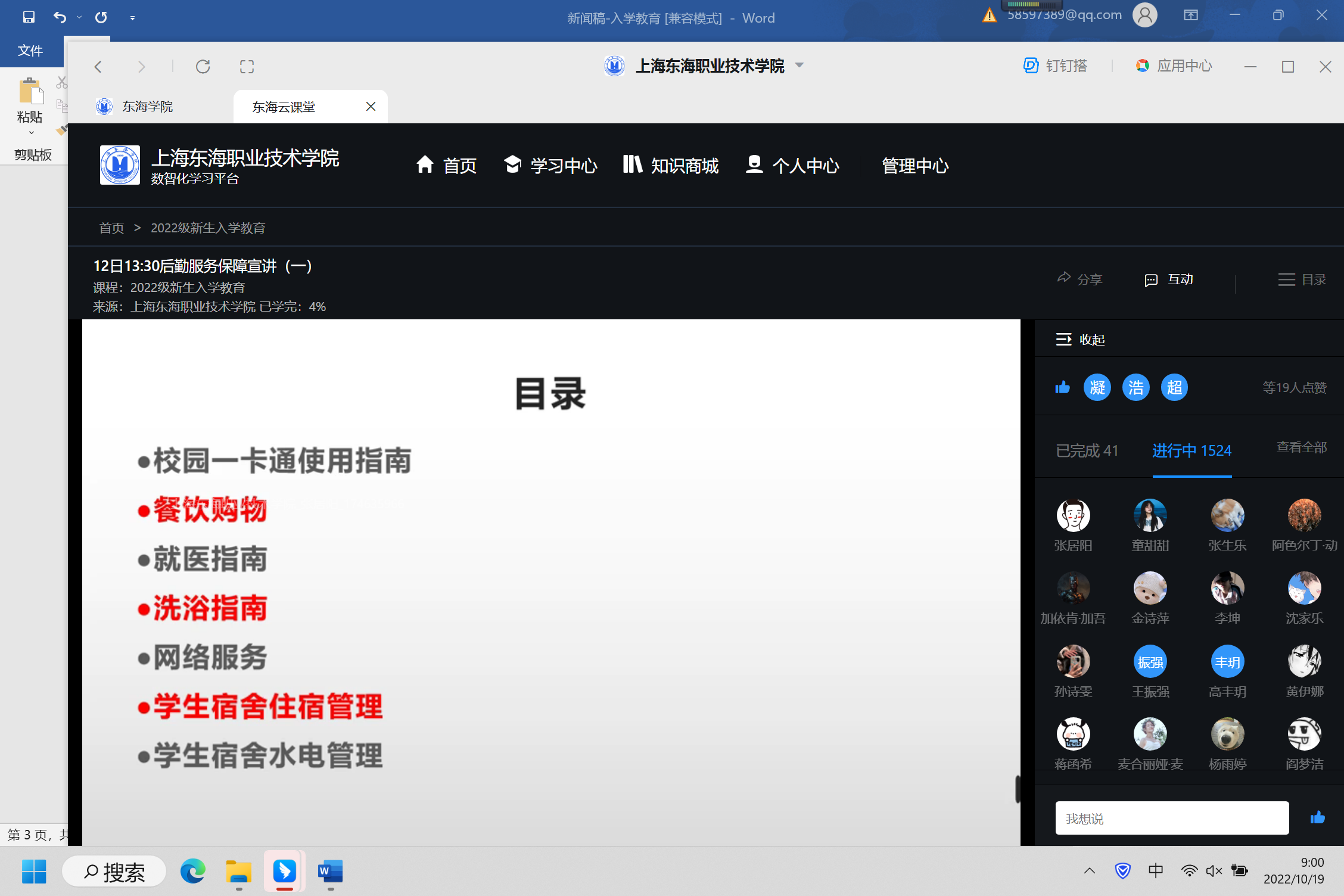 10月14日,为期五天的上海东海职业技术学院2022级新生入学教育圆满结束。今年的新生入学教育全程采用线上方式开展,共计2700余名新生共聚“东海云”。