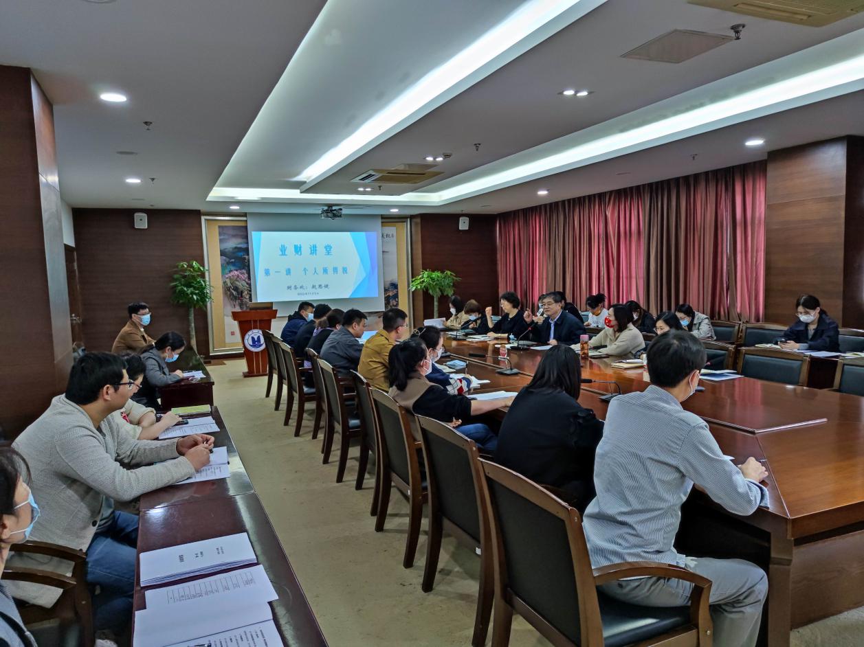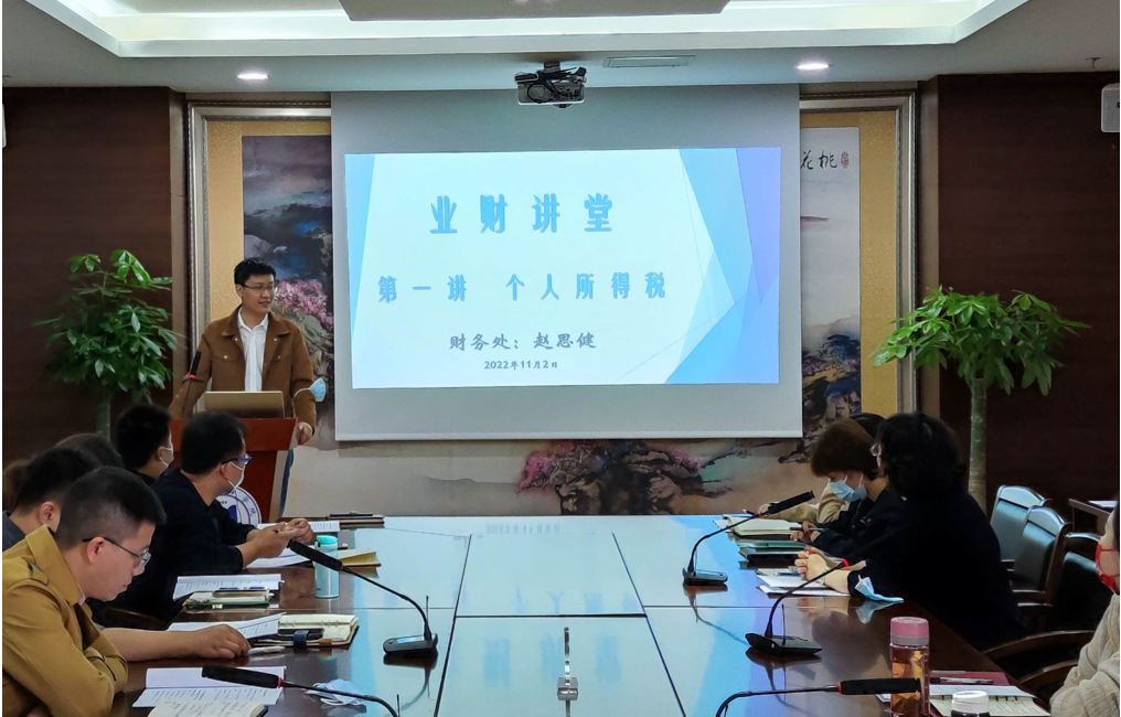 财务处赵思健作关于“个人所得税”的主题培训,分别从“哪些钱需要缴纳个税”“交税的依据”“怎么交税”三个点作切入,详细介绍了个人所得税构成内容、优惠政策和计税方法,并对社保构成等做了解释。交流互动环节,财务专员踊跃发言,对个税计税中的有关疑问进行了深入的交流和讨论。(通讯员 赵思健)