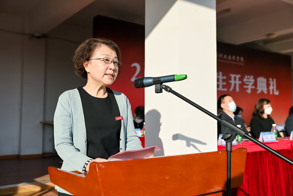 教育学院院长吴静芳在典礼上发言。她代表全体教师向新生们表示热烈欢迎和新学期的祝贺,并提出了三点希望:一是珍惜时光,勤奋努力,学业有成;二是规划未来,储备能量,蓄势待发;三是全面发展,在大学校园快乐成长,成人成才,为母校增光添彩。