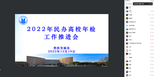 由于近期疫情防控形势严峻,此次推进会在线上进行。科技发展处首先传达了市教委关于本年度年检工作的各项要求,详细介绍了年检的具体检查事项、时间节点等工作内容,并结合学校实际情况,按照指标体系细化了工作任务,明确了各责任部门的分工。