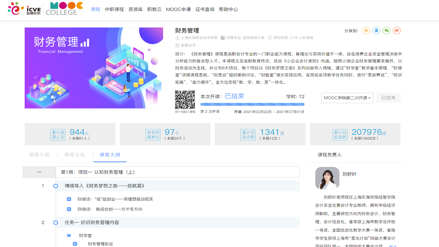 近日,教育部职业教育与成人教育司公示了2022年职业教育国家在线精品课程遴选结果,我校经管学院副教授刘舒叶主持的《财务管理》课程入选。