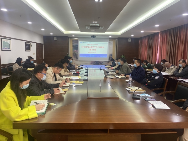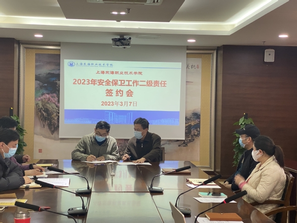 为切实做好学校安全工作,学校于3月7日上午召开了开学后第一次安全保卫工作例会暨2023年安全保卫工作责任书签约大会,各部处、二级学院相关负责人参加,同时还邀请了属地塘湾派出所专管民警参加,保卫处处长蒋久泉主持会议。
