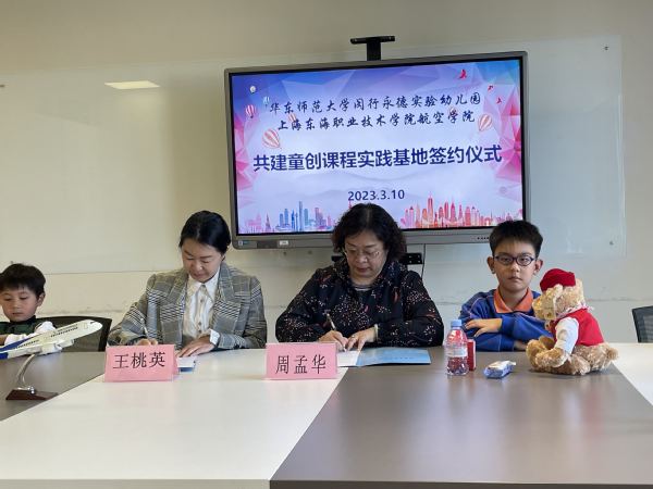 3月10日,航空学院与华东师范大学闵行永德实验幼儿园在匠兴苑航服中心举行签约仪式,确定航空学院与永德实验幼儿园携手共建“童创课程实践基地”的合作方向。航空学院院长周孟华、副院长张敏、院办主任卢桃、实验幼儿园园长王桃英及保教主任刘杨参加了此次签约仪式。