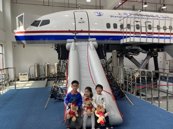 签约仪式之后,航空学院还开放静态模拟舱实训室和动态舱实训室,为一起参会的三位幼儿代表提供了职业体验。孩子们对此次体验非常喜爱,对客舱知识很感兴趣。