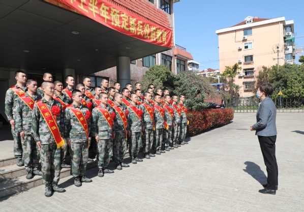 3月14日下午,闵行区民兵训练基地内,校党委书记曹蓉蓉、副书记王玉带领学校武装部人员,为我校30名春季预定新兵举行了简短的入伍欢送仪式。领导为新兵们佩戴入伍光荣花、送上纪念礼品,并与全体新兵合影留念。