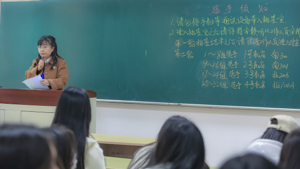 比赛当天,东海学院志愿者协会的30名学生在团委老师带领下,从选手报到开始,开展为期一天半的志愿服务工作。参赛选手全部报到、检录之后,由“星光计划”会计技能项目裁判组组长上海对外经贸大学副院长辛琳宣读抽签规则、赛项规程、选手注意事项等。选手完成抽签之后由志愿者点对点带入赛场,随即开展赛前准备工作。