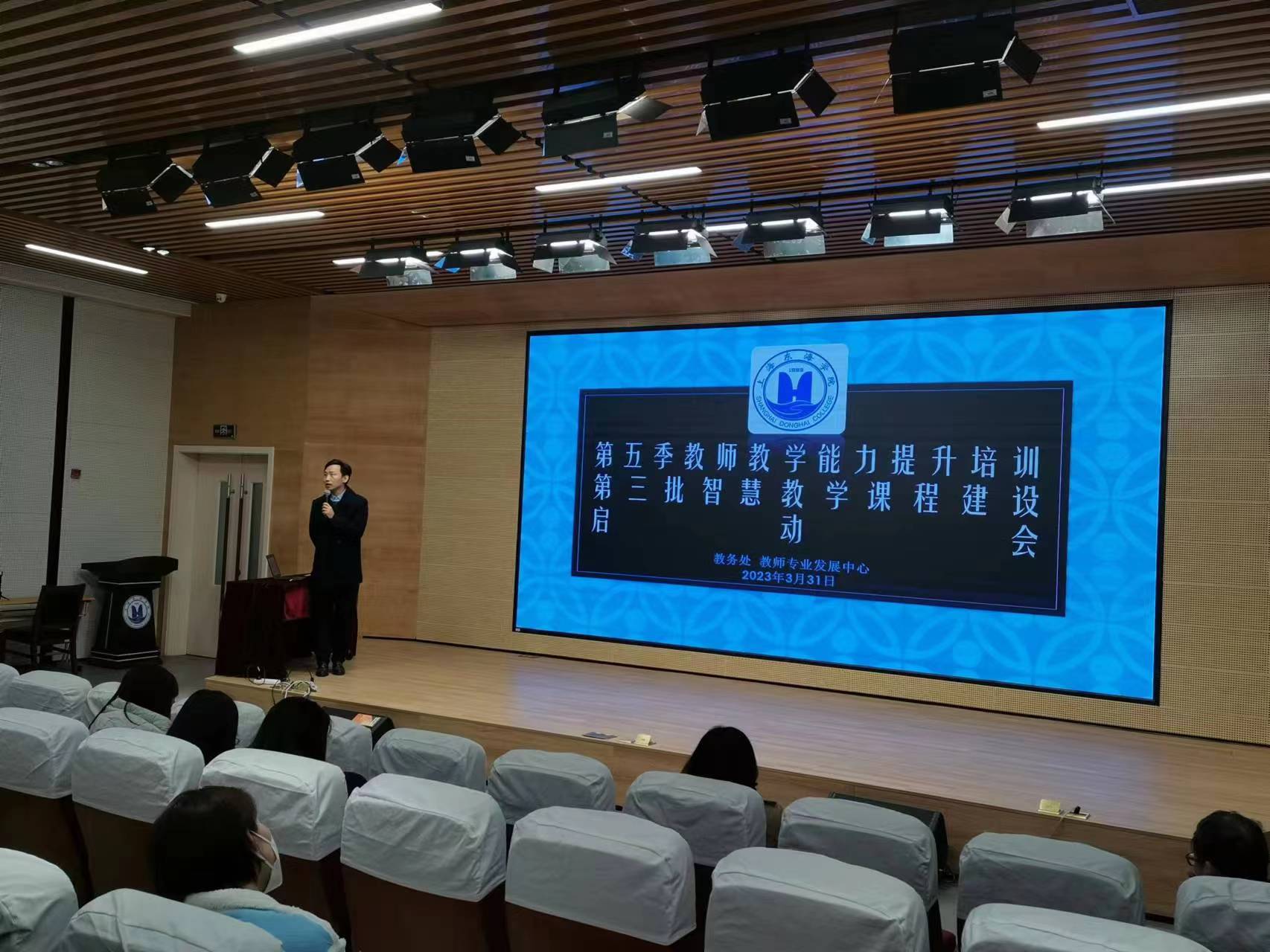 3月31日下午,上海东海职业技术学院第五季教师教学能力提升培训暨第三批智慧教学课程建设启动会在匠兴苑学术报告厅召开,校领导、各部门教学负责人、第三批智慧教学课程负责人及骨干教师代表共计50人参会。启动会由教务处处长张居阳主持。