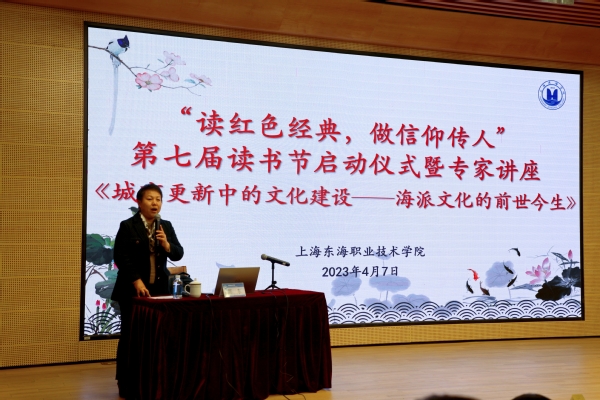 会上,党委书记曹蓉蓉为中共上海市委宣传部原副部长、上海大学海派文化研究中心主任陈东颁发客座教授聘书,并宣布上海东海职业技术学院第七届读书节启动。