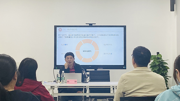 数字信息时代,时间维度被打破,“爱与思考”穿插在无数的时间碎片之间;知识爆炸,信息目不暇接,本身完整的信息也常常被分解为各个片段,人们只能利用零散的时间去获取零散的信息,碎片化阅读形式便应运而生。杨桦教授指出,碎片化阅读形式具有自身优势,它可以紧跟时代发展的步伐,随时随地、随心所欲,可以使阅读的时间和地点不受客观因素的制约。但碎片化阅读的弊端也非常明显,碎片化诱发的低质化、低效化问题使人的心态变得浮躁不安,甚至导致人们沉迷虚幻世界不能自拔。针对“碎片化”现象,杨教授认为,载体在变、方式在变、内容在变,但学习规律不会变;“不积小流,无以成江海”的积累始终重要,“书山有路勤为径”的刻苦永远关键。碎片化阅读时代仍在呼唤高质量阅读。作为距离学生最近的辅导员,更应该率先垂范多读书。“读经典的书,结合自身的经历理解品味经典,引领学生通过‘读’激发‘想’,对学习生活乃至人生道路进行深入思考;读有用的书,读哲学、社会学、心理学,利用书中的知识武装头脑,增长技能,反哺日常工作;读无用的书,放松身心,提高个人审美情趣,过滤心灵世界的浮躁之气。”杨桦教授的话引起在场辅导员们的强烈共鸣和热烈反响。