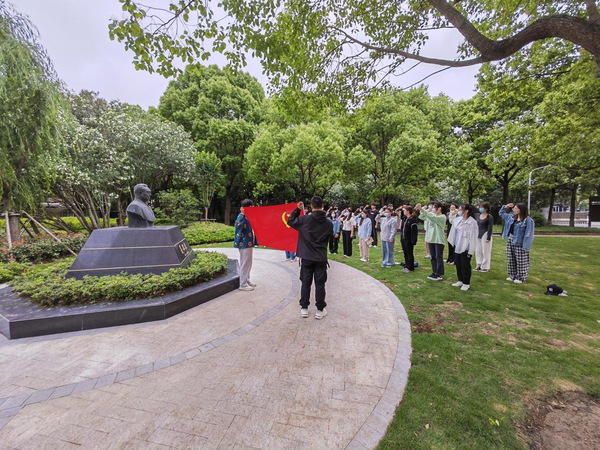 最后,在朱新华的领誓下,毕业生党员在夏征农老校长雕像前举行庄严的宣誓仪式,重温入党誓词。(通讯员 朱新华)