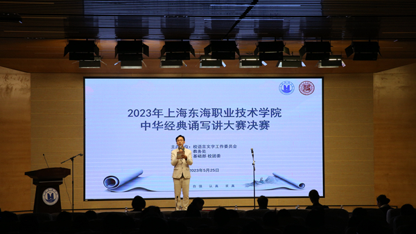 根据《上海东海职业技术学院关于举办2023年中华经典诵写讲大赛的通知》要求,由校语言文字工作委员会主办,教务处承办,基础部、校团委协办的“2023年中华经典诵写讲大赛”暨“第五届中华经典诵写讲大赛上海赛区系列比赛”校内选拔赛已于5月25日圆满落幕。本次大赛的主题为“书香新时代 ‘典’亮新征程”。