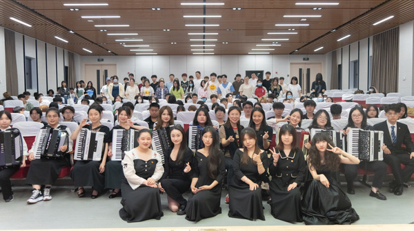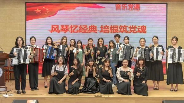 为深入学习贯彻习近平新时代中国特色社会主义思想主题教育,在美育中提升爱国情怀,东海学院传媒学院6月7日晚在匠兴苑报告厅开展了一堂以“风琴忆经典,培根筑党魂”为主题的音乐党课,本次党课特邀来自上海师范大学音乐学院的手风琴教师时璇及学生青年演奏家们为200余名的传媒学子进行奏唱。