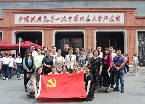 中共一大纪念馆综合采用文物实物、视频、油画雕塑、实景还原、多媒体声像等多种展示手段,生动系统地向前来参观的人们讲述着中国共产党由一个不到60人的党,发展壮大成拥有9600多万名党员的世界最大执政党,带领全中国人民救国、兴国、强国,为中国人民谋幸福,为中华民族谋复兴的伟大历史。在纪念馆内,从“前赴后继、救亡图存”“民众觉醒、主义抉择”,到“早期组织、星火初燃”“开天辟地、日出东方”“砥砺前行、光辉历程”,王刚、曹蓉蓉一行沿着主题展区,在讲解员带领下,认真听、仔细看,并不时用手机拍下影像。在各主题展区,各类展品描绘了近代以来中华民族在中国共产党领导下走上光明道路的历史图景,史诗般重现了中国共产党的创建历程,无数仁人志士、革命先烈矢志不渝奋斗砥砺中华民族伟大复兴的奋进征程。大家还不时停下脚步,认真观看珍贵视频,驻足凝视档案史料,回首党的光辉历程,领会伟大建党精神。在鲜艳的党旗下,全体党员举起右手,紧握拳头,重温入党誓词。