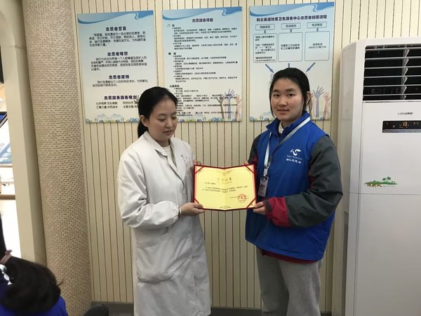 在志愿服务方面,她积极投身志愿服务。在校外,她积极参与上海市公益机构组织的志愿活动,如帮助穷困山区孩子们每年读一本好书的美丽心灵;为老年人提供测量血压、临终关怀等活动的徐汇社区医院;帮助残障群体走出家门的志仁公益等团队。在校内,她积极参与禁烟、迎新、疫情防控等各项志愿活动。在学校受疫情影响封校后,她第一时间奔赴一线,和志愿者们一起统计住楼名单、测量体温、爬楼送饭、为同学借药等。入校后,共计志愿服务时长300余时。