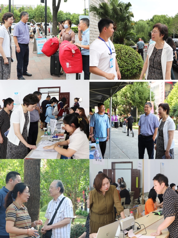 清晨,阳光初绽,负责迎新工作的各职能部门负责人、各学院院长、教师、工作人员及志愿者们已经在报到点做好准备工作,等候新生的到来。校领导也相继来到报到点,查看新生报到情况。