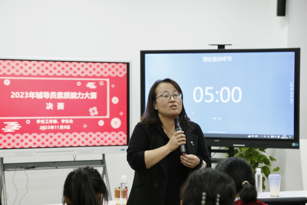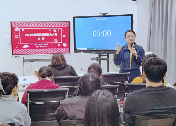 为深入学习贯彻习近平新时代中国特色社会主义思想和党的二十大精神,进一步提升我校辅导员的专业水平和职业能力,11月9日下午,2023年学校辅导员素质能力大赛决赛在大学生发展中心会议室举行。马院院长龙燕、学生工作部部长杨瑾、学生工作部副部长王莉娜担任决赛评委,各学院支部书记、全体辅导员观摩比赛。