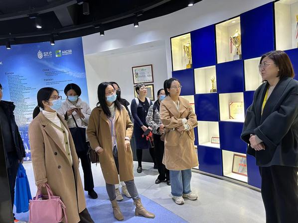 上海大学悉尼工商学院教学管理部主任高莹和英语系主任旷群热情接待了去学习交流的老师们。高莹引导老师们参观了上大悉尼工商学院的智慧教室、学生学习中心,并从上大悉尼工商学院的创办历史、现有学院架构、学生英语课程设置、学校英语教学特色、英语教学成果等方面作了详细的介绍,让参加交流的老师们对学院情况有了大致的了解。
