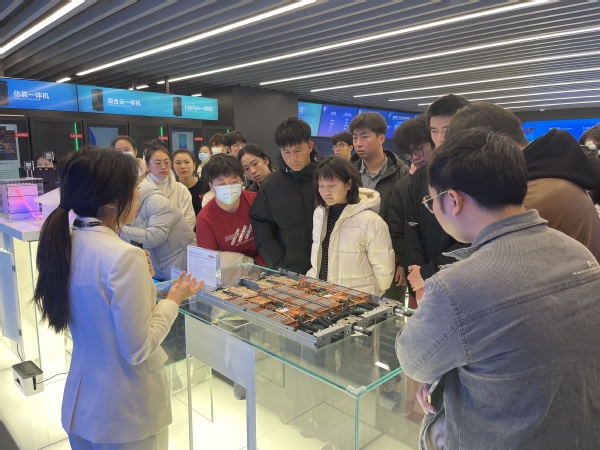 从进入联想上海未来中心展厅那刻起,师生们便跟随讲解员的引导一起进入一个“看见未来”的科技世界。展厅围绕智慧城市、智能制造、智慧教育、智慧农业、智慧办公等行业相关场景,结合人工智能、大数据等新技术,让师生们开拓视野,领略科技的魅力。