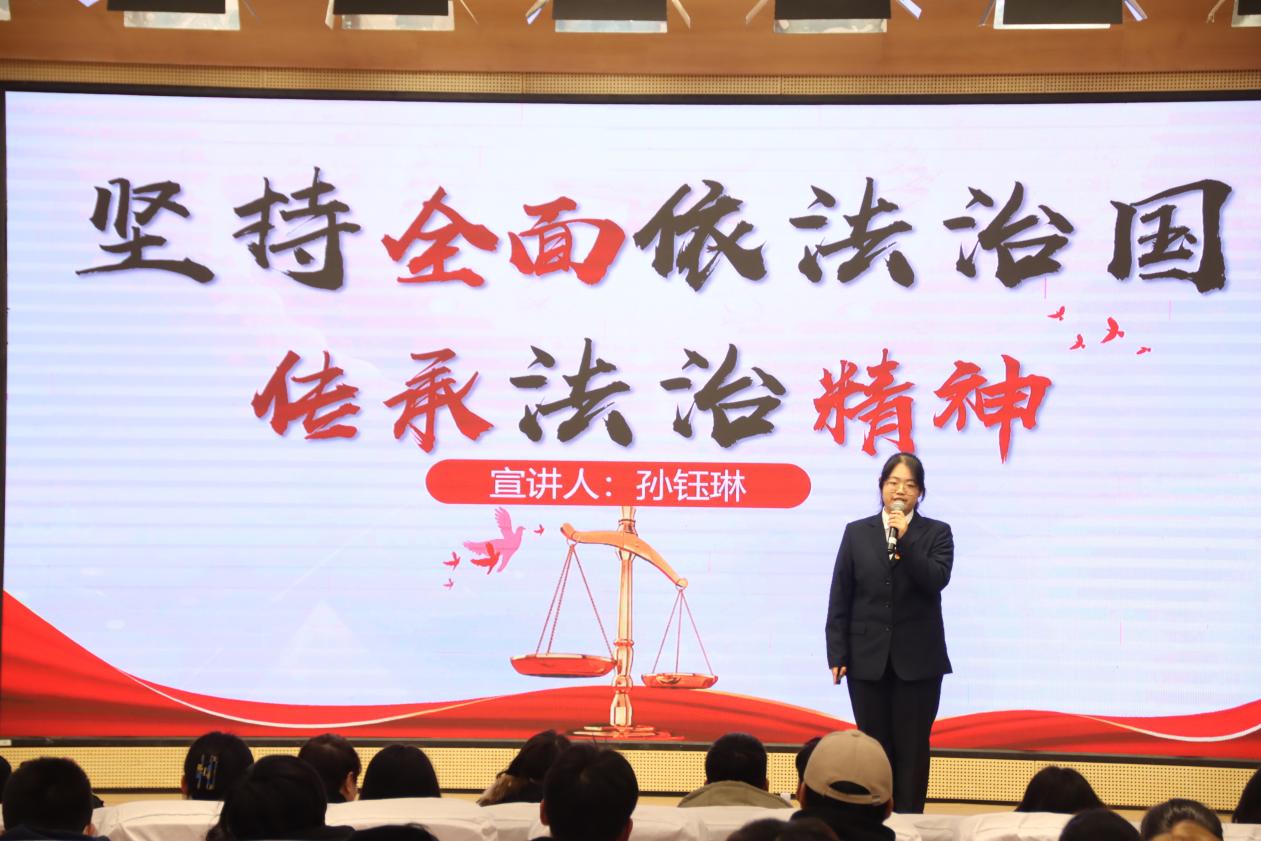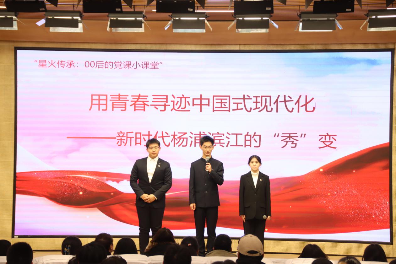 校党委副书记王玉、马院院长龙燕为理论宣讲团授旗,党委宣传部副部长杨静宣读2023年度“优秀宣讲员”名单,优秀宣讲员代表王子涵、蒋雨霏、李晔宇、孙钰琳等分别围绕《用青春寻迹中国式现代化——新时代杨浦滨江的“秀”变》、《坚持全面依法治国 传承法治精神》不同主题进行现场理论宣讲。现场还开展了中共四大纪念馆志愿者招募宣讲活动。