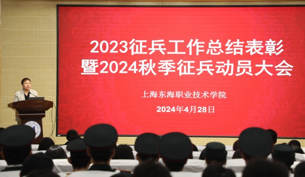 4月28日中午,我校在匠兴苑报告厅召开2023年征兵工作总结表彰暨2024年秋季征兵工作动员大会。校领导,相关职能部门负责人,二级学院院长、党支部书记、辅导员,退役士兵和入伍积极分子代表出席会议。会议由党委副书记王玉主持。