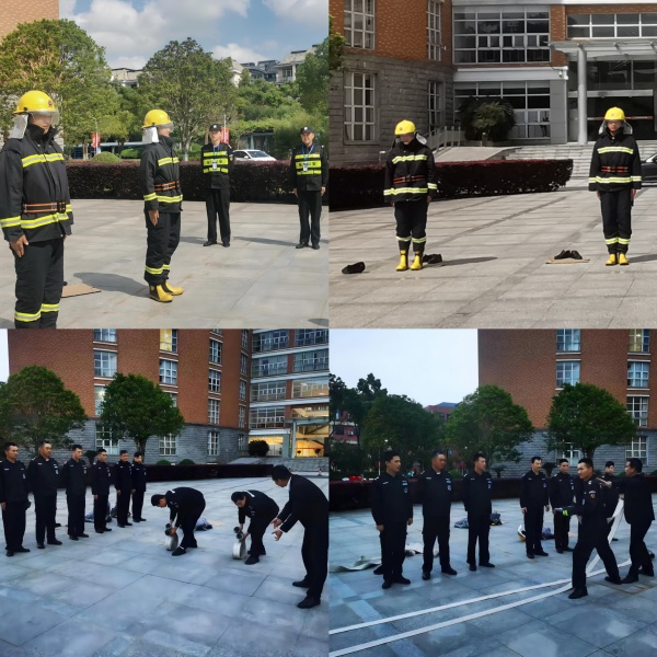 在消防器材使用训练中,保安人员详细了解了不同类型消防器材的适用范围和操作方法,并进行了模拟灭火演练,这不仅提高了他们对火情的应对能力,也为校园的消防安全增添了有力保障。