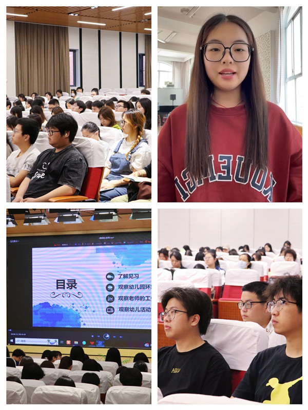 最后,教育学院院长许铁梅教授为学生做见习前指导。她认为作为大一学生就能进到幼儿园见习,要格外珍惜机会,抓住机会,更充分地做好相关准备;在幼儿园要看见儿童、发现儿童,要细心观察儿童、耐心倾听儿童,和儿童一起成长;她还特别叮嘱学生们在见习期间要注意个人的人身安全问题。