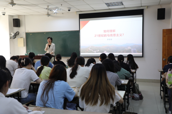 党的十九大把习近平新时代中国特色社会主义思想确立为党必须长期坚持的指导思想并庄严地写入党章,实现了党的指导思想的与时俱进。第十三届全国人民代表大会第一次会议通过的宪法修正案,郑重地把习近平新时代中国特色社会主义思想载入宪法,实现了国家指导思想的与时俱进,反映了全国各族人民共同意志和全社会共同意愿。习近平新时代中国特色社会主义思想,是新时代中国共产党的思想旗帜,是国家政治生活和社会生活的根本指针,是引领中国、影响世界的当代中国马克思主义、21世纪马克思主义。那么,“怎么理解21世纪的马克思主义?”围绕着这个主题,6月14日上午,党委书记曹蓉蓉来到教室,为动画232班、学前232班、学前233班、艺术234班、学前234班的150余名学生上了一堂专题党课。