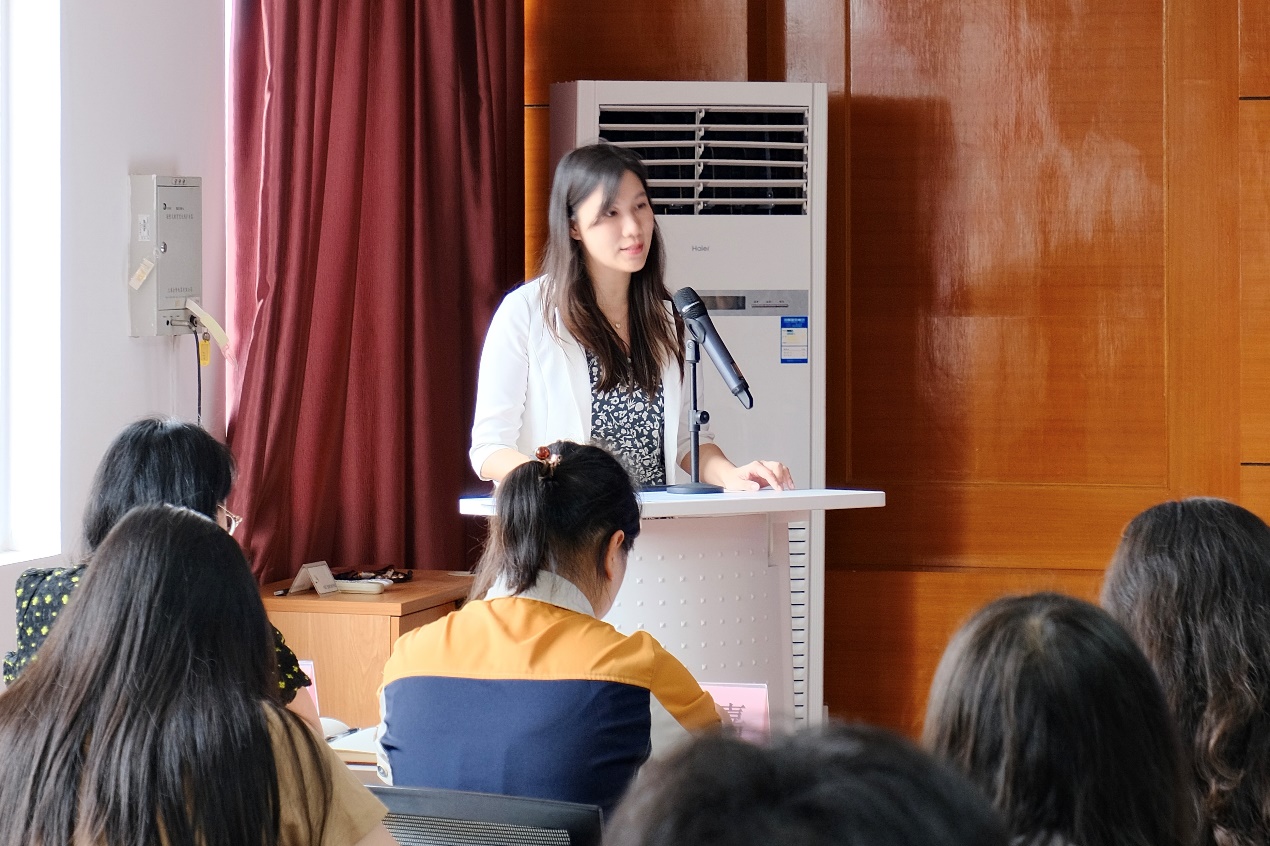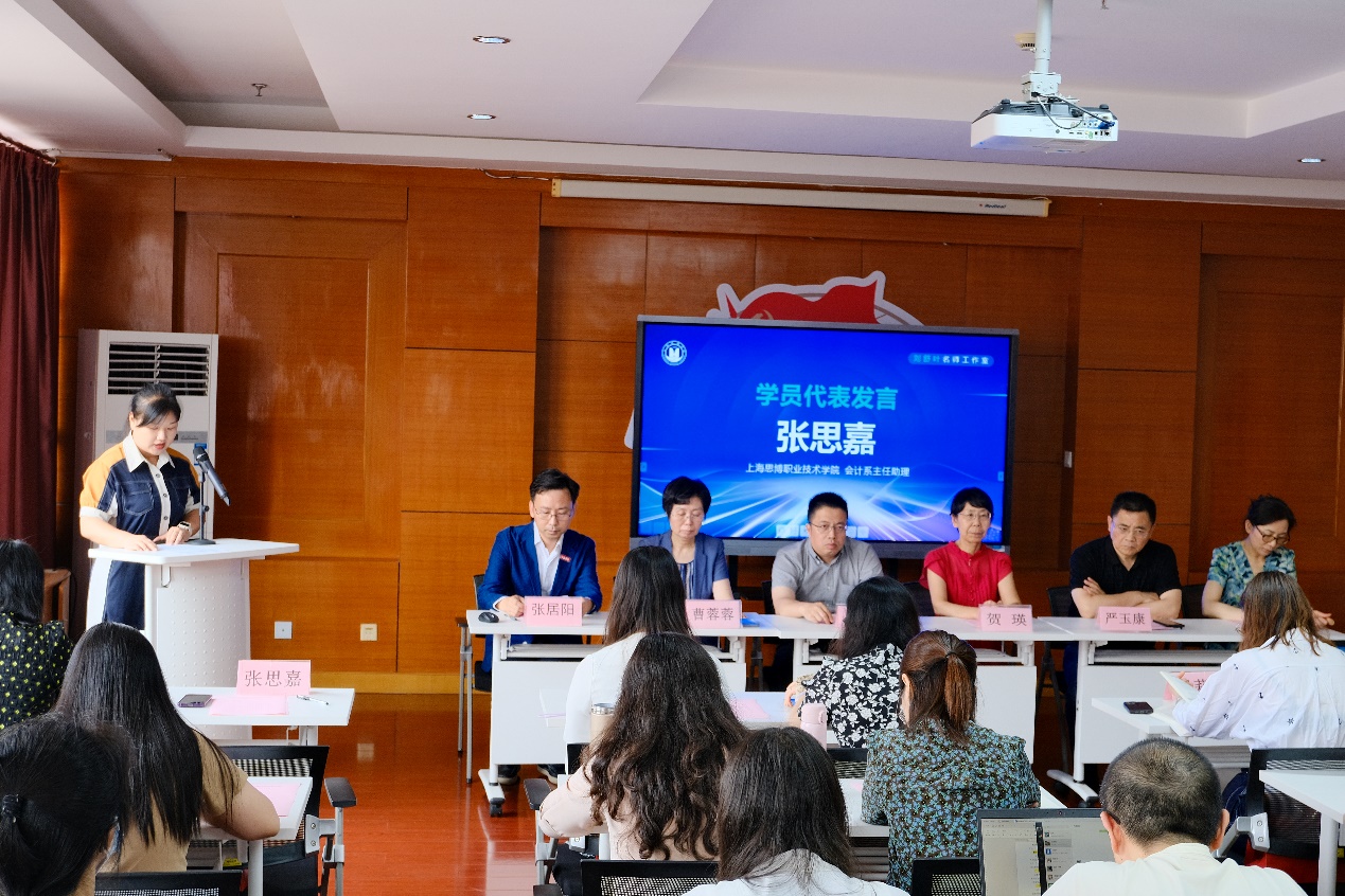 工作室学员代表张思嘉作了发言。她表达了对加入工作室的激动和荣幸,表达了为促进教育发展的责任和力量,表达了致力于专业发展的信心和决心。