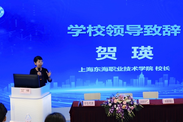 校长贺瑛发表致辞,对参加签约仪式的各位来宾表示热烈的欢迎。她肯定了关务专业已取得的优异成绩,激励关务专业向国家级双高专业发起冲刺,对此次东海经管学院与兴亚报关公司正式签约建立定向现代学徒制合作关系表示祝贺,并希望双方深化合作,协同育人,共同培养新时代所需的国际化、数智化关务管理人才。